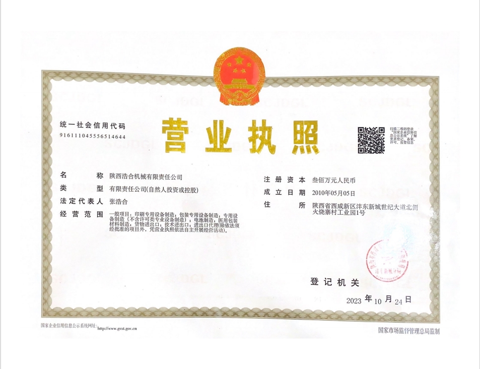 陜西浩合機(jī)械有限責(zé)任公司——營(yíng)業(yè)執(zhí)照